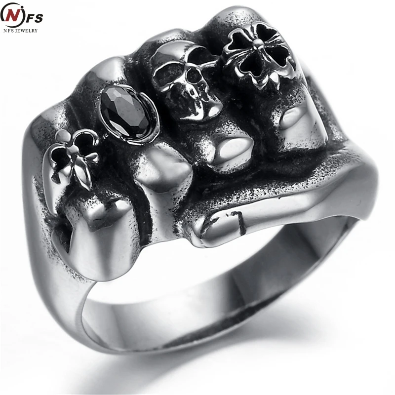 where can I actually buy NFS Flower Skull Men Ring Fashion Men Gothic Flower Skull Stainless Steel Biker Ring Titanium Anarchy Death Fist Skull Ring